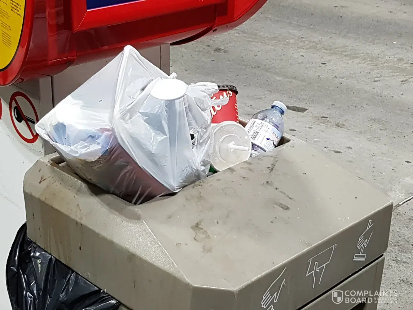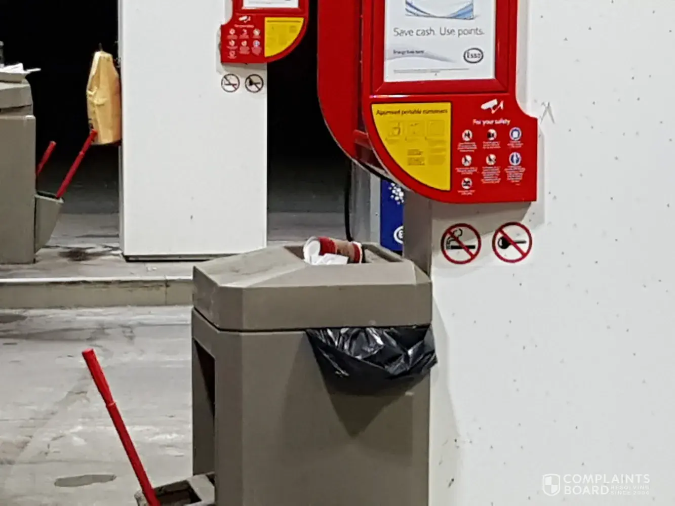 12 July 2018 around 22h00 I stopped to tank up my pick-up truck at the Esso station located off exit 814 on Hwy 401, South Lancaster, Ontario. I could not believe the filth the greeted me as I pulled up to the pumps. It was like I had entered a gas staion in a third-world country. Totally pathetic, garbage cans were overflowing and gsrbage was piled up on the ground. The pump was covered in some sort of sticky goo that had also accumulated on the ground in front of the pump. The buckets for the windshield washer squeegies were polluted with paper towel, garbage and the the fluid was just dirty ditch water not washer fluid or a soap and water mix. I was empty so gased up regardless of the chaotic neglect. I went inside store and mentionned my dissatisfaction with the clerk but she just acknowledged the situation and blamed the lack of a sufficient number of employees to provide a better upkeep! [censored]! I told her I was there several times in the past and it has always been dirty but that this was the worst I had ever seen. She suggested I take photos and complain to Esso Canada. Consider it done! Photos attached.