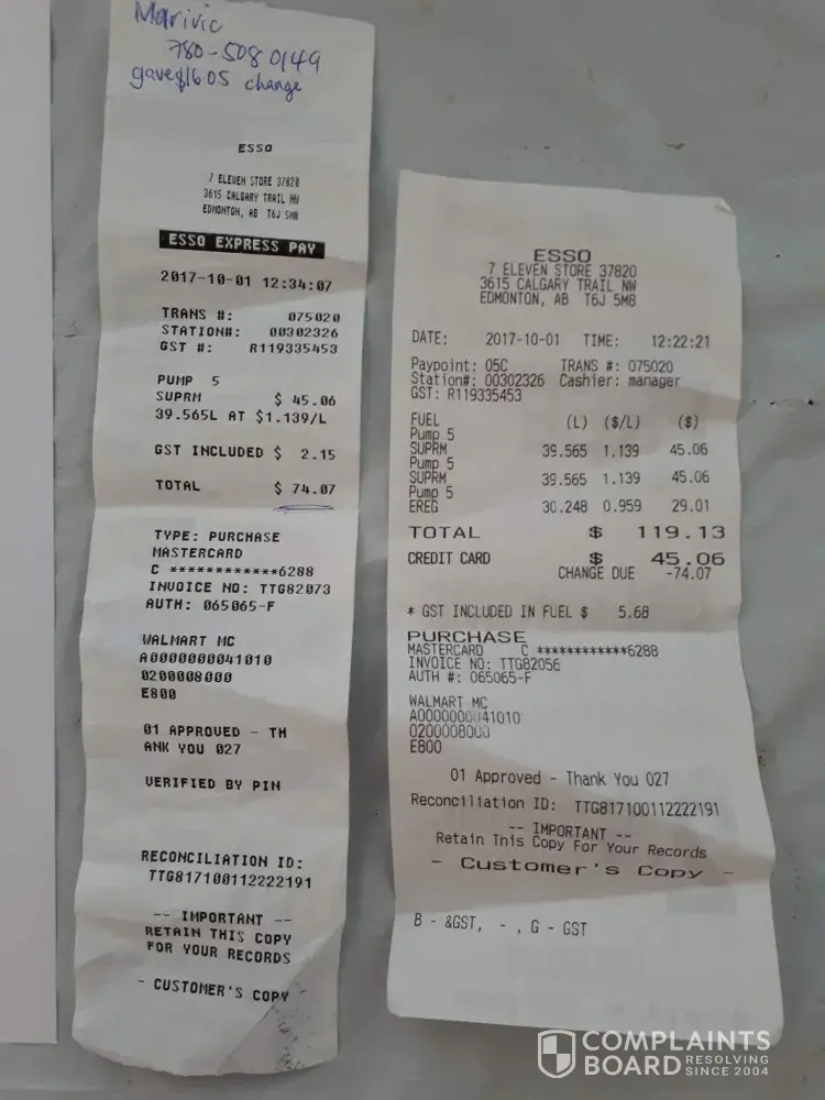 Esso Station [protected] Transaction # 090859 Terry Fox Drive in Kanata Ontario