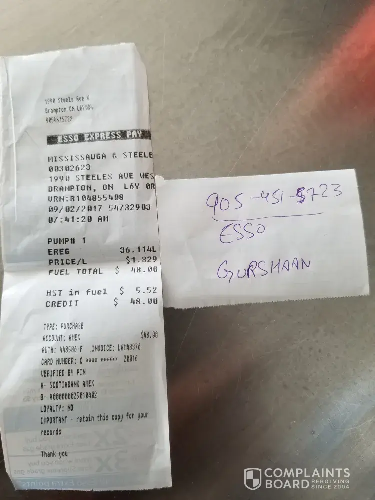 bought gasoline from esso station at 10 ave sainte crois st. Laurent Quebec