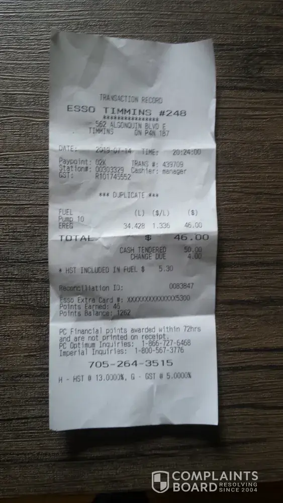 Vulcan Alberta esso gas station, there is a grumpy grumpy guy working as cashier& I prepaid for my gas 20$ and I swiped my points card and left. When I got back to my car I seen he didnt even wait long enough for my card to go through. So I never got the points. Hes always such a jerk. Another time I only had change to pay for my fuel and I put it on the counter and he refused to take my money because it was change and not paper money or on a card. He actually refused to sell me fuel. I was so mad. I dont even know why he still works there. He is just awful.