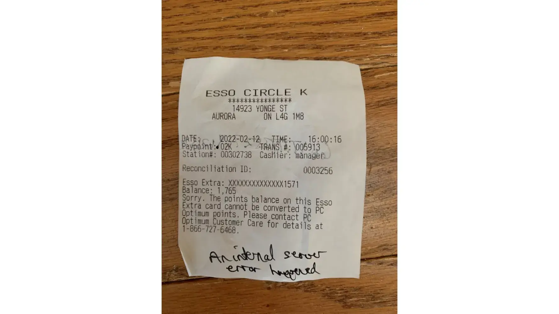 Desired outcome: To speak to someone who can resolve this technical issue associated with my Esso Extra points conversion to PC Optimum points