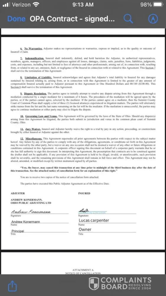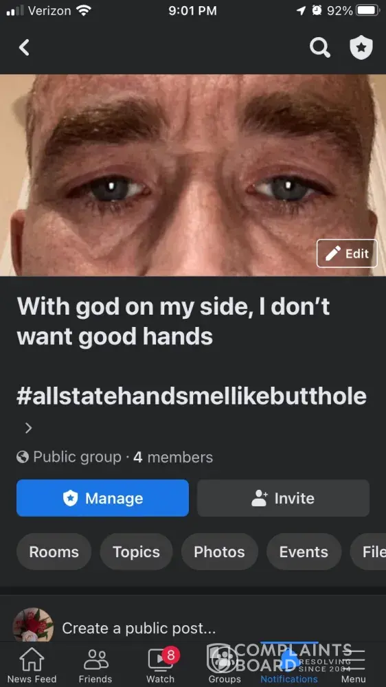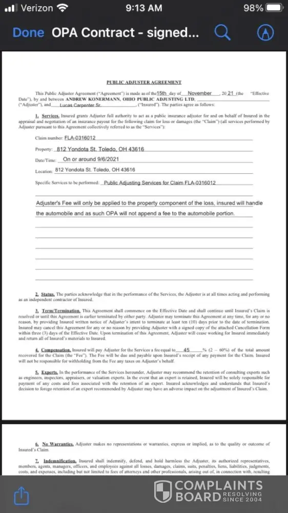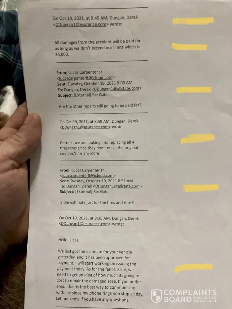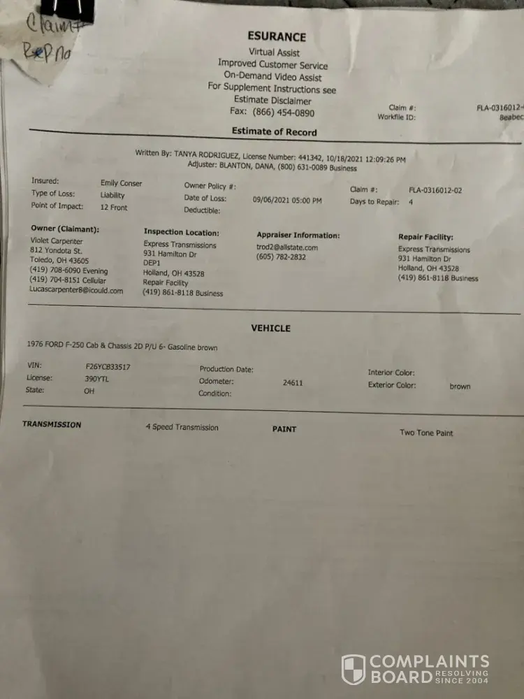 7. I have been told this is a third-party adjuster assign by All State and the only compliant process is to the Vice President.