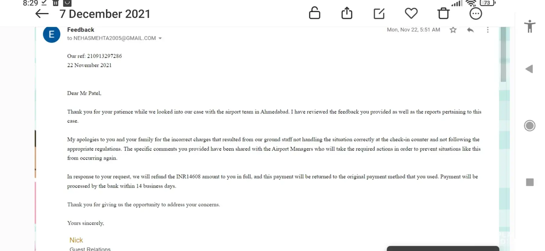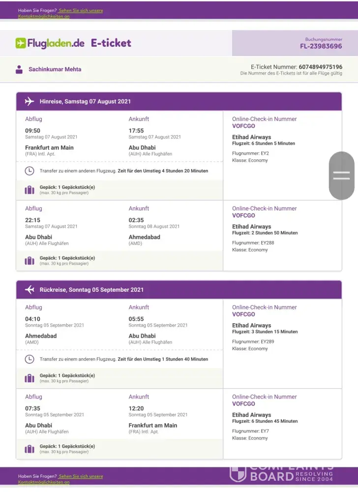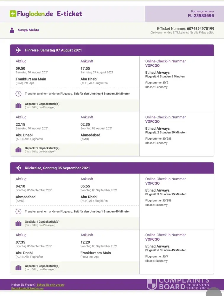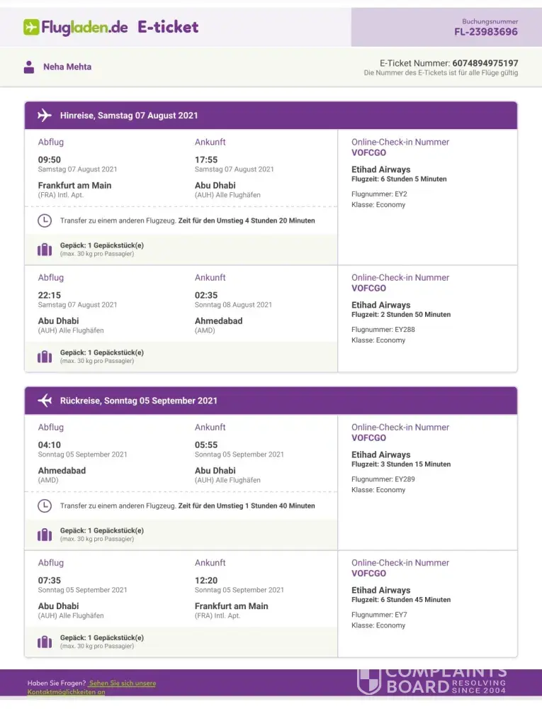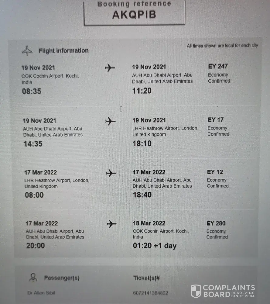 Etihad guest ref: 500030246144 grievance booking / ref : ujqgew