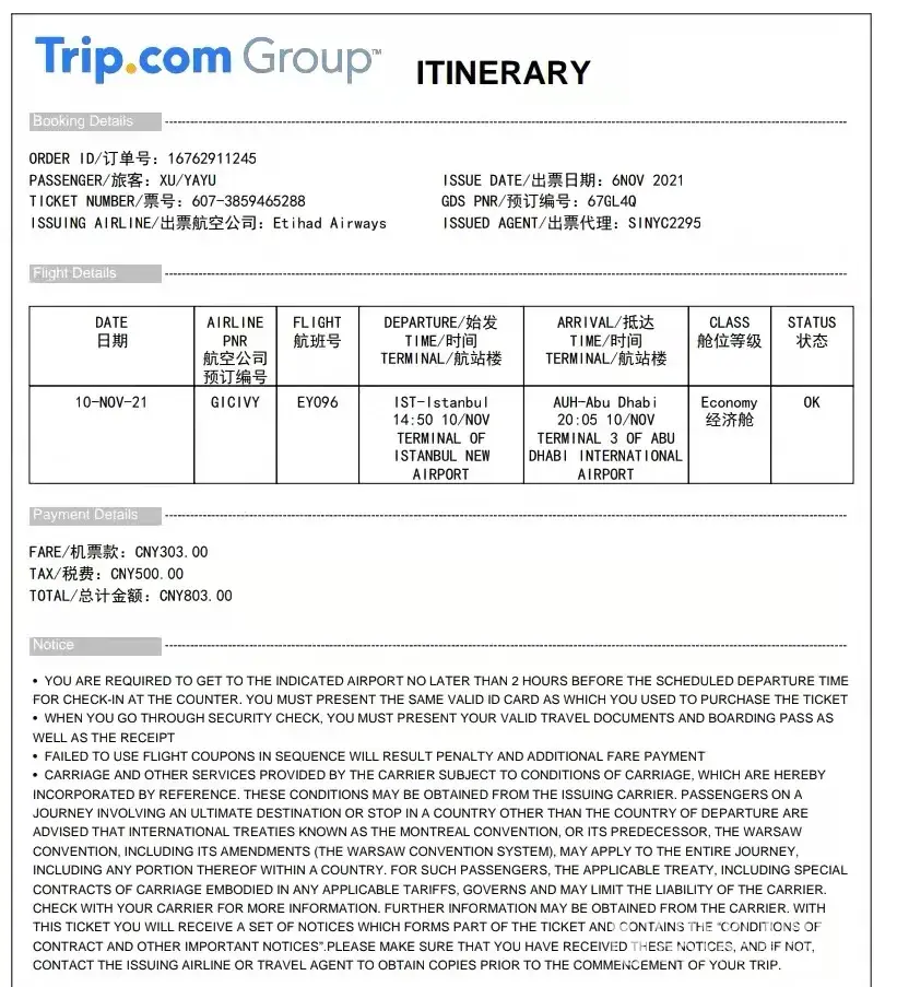 i bought the ticket from istanbul to abu dhabi flight on 10th NOv 2021 14:50pm,