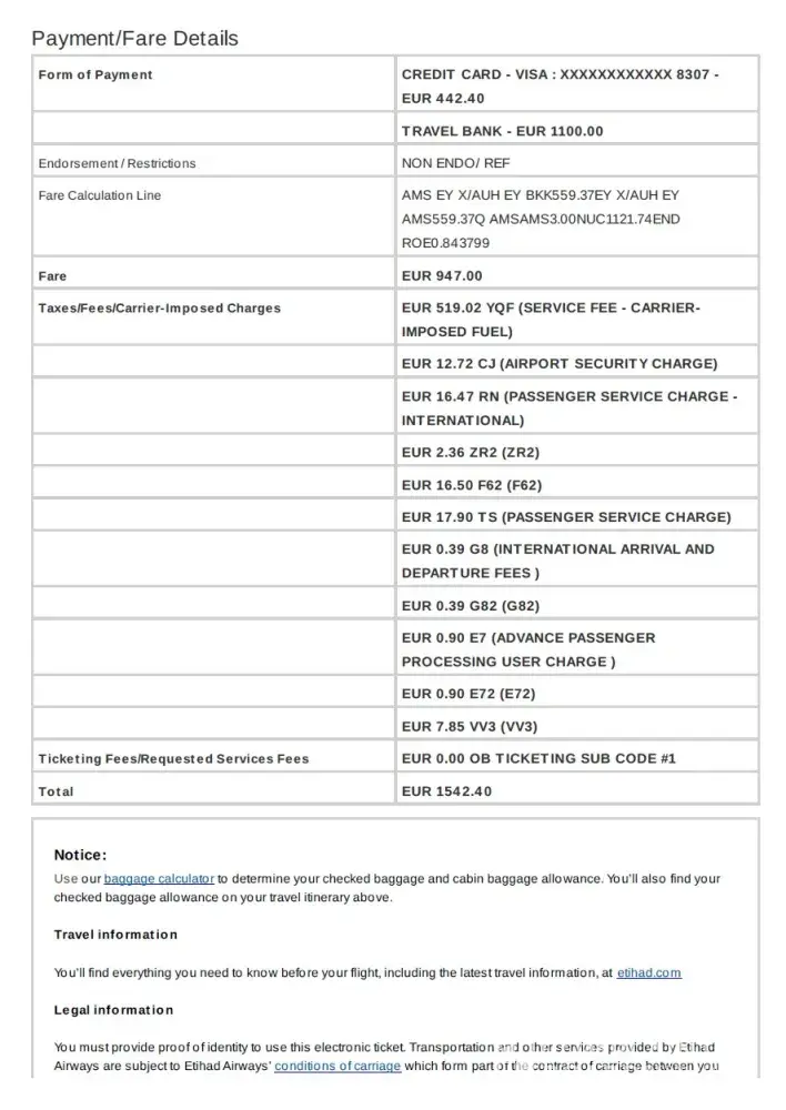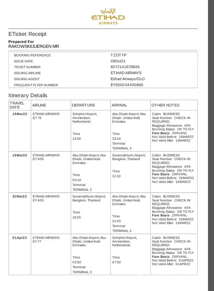 Etihad Guest Ref: 500030246144