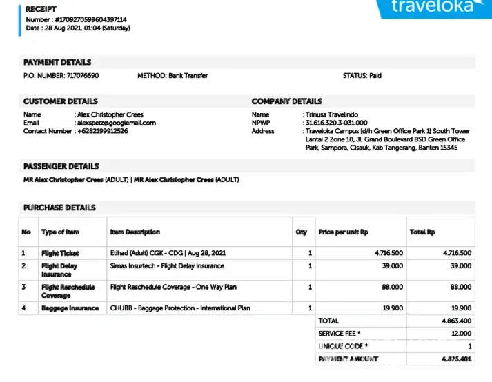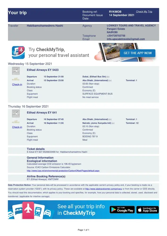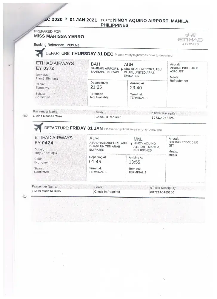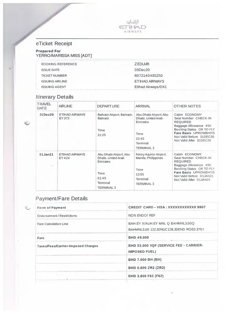 - Our flight tickets with Etihad on Aug. 28th and receipts