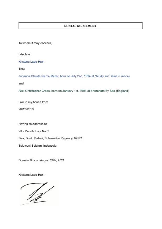 We provided all the documents proving that Alex Crees and myself have been cohabiting under the same house for more than 3 years and therefore allowed to travel to France submitting a sworn commitment to take an antigenic test upon arrival in metropolitan France and be quarantined by prefectoral order for ten days, with security checks.