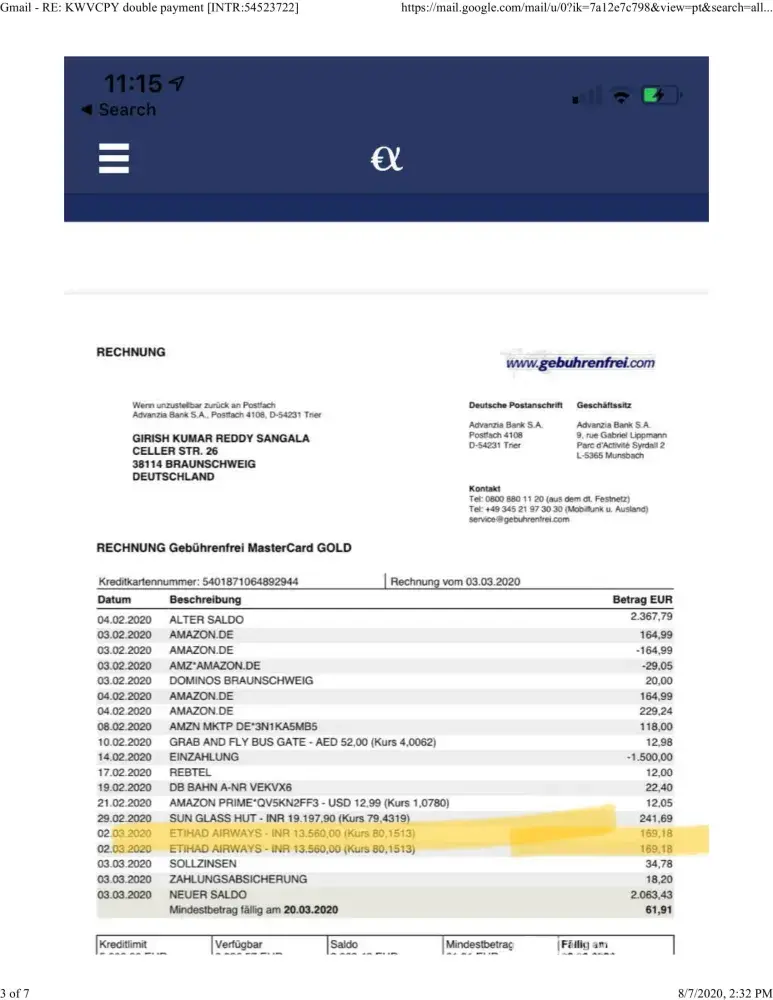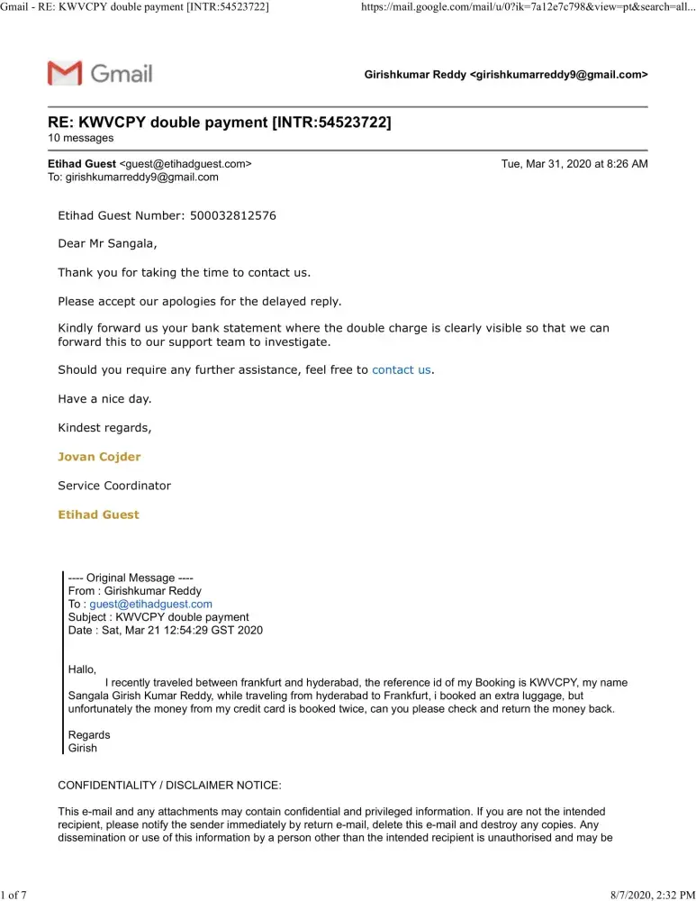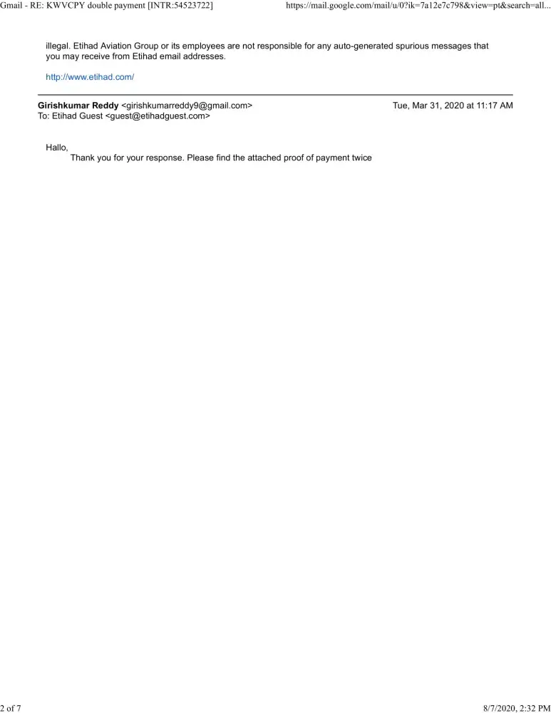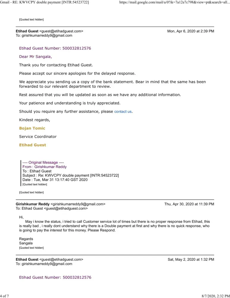 So here is the complaint which I have been complaining from 03-03-2020, unfortunately etihad never refunded my money for the double payment they did.