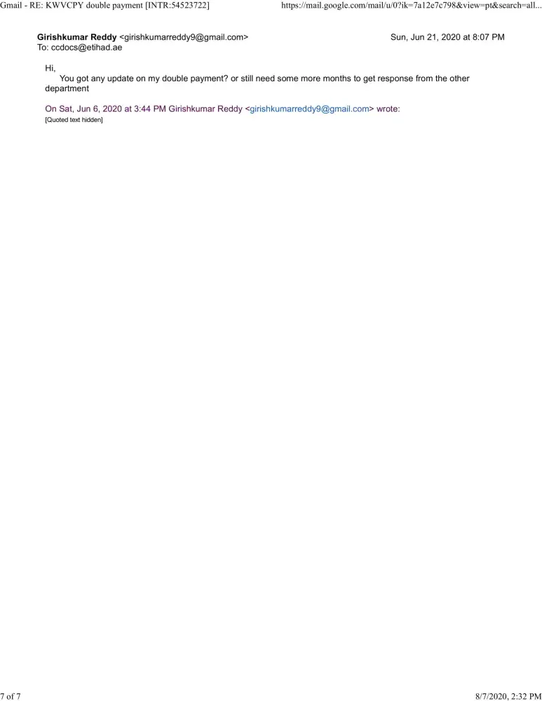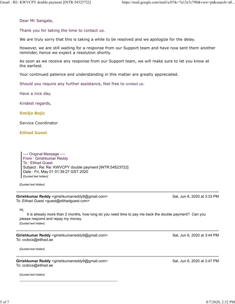 Have spoken to Etihad multiple times as well. still no