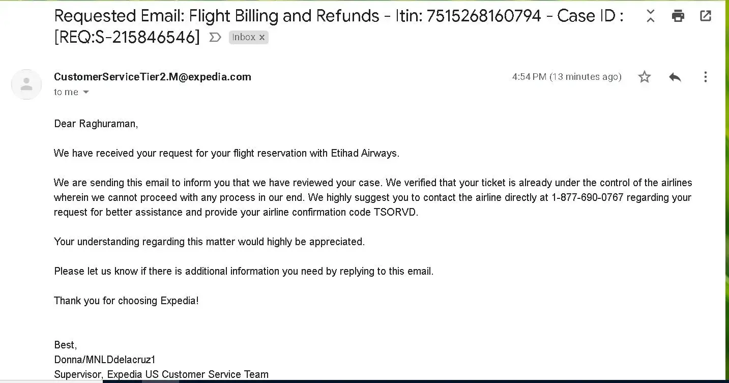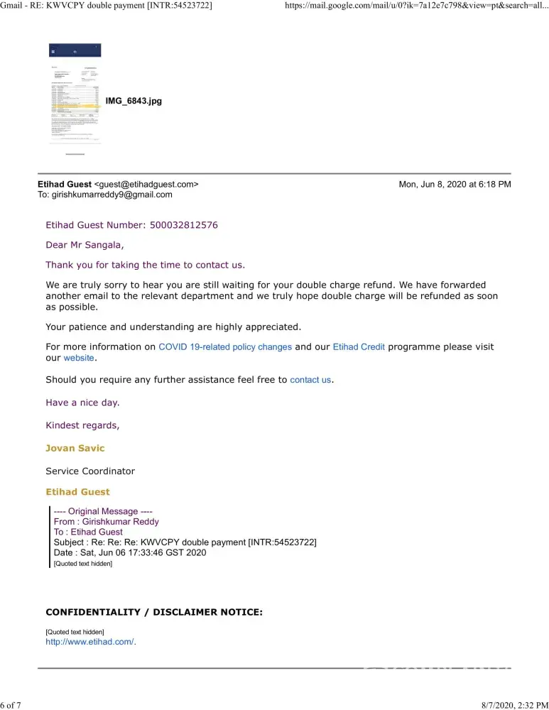 So where is your promise, Etihad Airlines? Are you proceeding our fully refund?