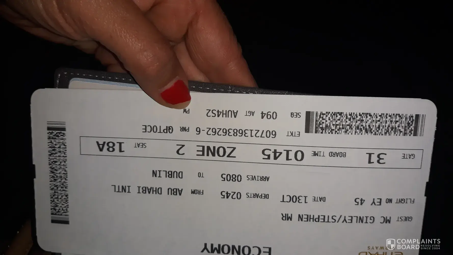 Hi. I wish to make a complaint regarding our return flight from our honeymoon from abu Dhabi to Dublin the 13th of October 2019 ref QPTOCE. At the boarding gate we were informed that the seats that we had pre paid for were not available on this flight as the was a change of plane for our return journey home. We were seated in 'normal ' seats together in row 18. We paid extra for our original seating together in row 53 together as these are in 2's only. The reason we pre booked and paid extra for these seats is that my wife suffers from fibromyalgia and needs extra room for her disability. She was in extreme pain after the flight as a result of this inconvenience. I wish and expect to get a full explanation and resolution to the matter and refund of costs from ethaid. Regards. Stephen mc Ginley