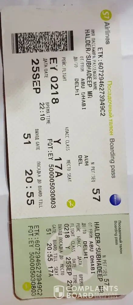 I Subhadeep Halder, buyed both ways Tickets from Etihad Airlines for my Russia Trip.e-Tickets number:6072946273948C4.on 25th of 2018 i travelled from St.pettersburg to Delhi.we complete my check in with my two luggage but After reaching Delhi we founds only one luggage.when I going to complain about it's first etihad employ said that he will not Avail to take complaints.then after doo many coneversation he ask for my original tag for lost luggage and said me that he taking complain but will not provide any receipt copy. I didnt find any alternate way so I agreed that and take my complaints photo copy and original tag photo also.thay taken original luggage tag from me and inform me that within 3days they will delivery my luggage in my door step.but till day they didn't inform me about my luggage. Please give me a solution about it.