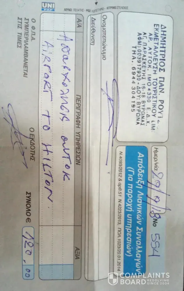 Once we presented our both bills to M/s Goldair Handling for refund, they refunded our 40.25 euro taxi fare but refused to refund our 120 euro limousine fare. For that they asked us to request your office for the refund.