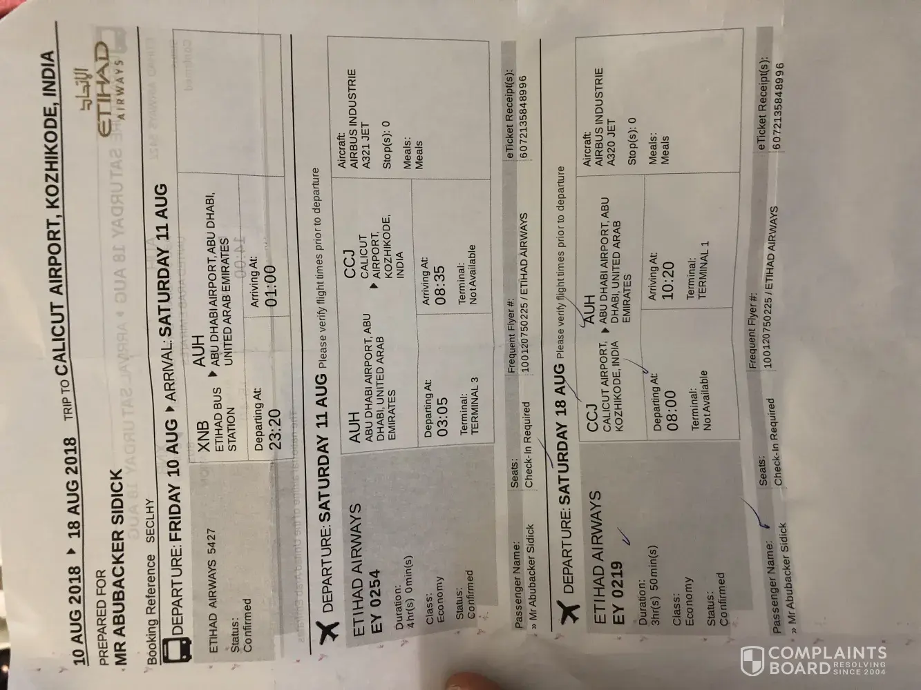 Further, we have been flying with Eithad for over 5 years and were very disappointed with this whole event for summer vacation and numerals business trips.