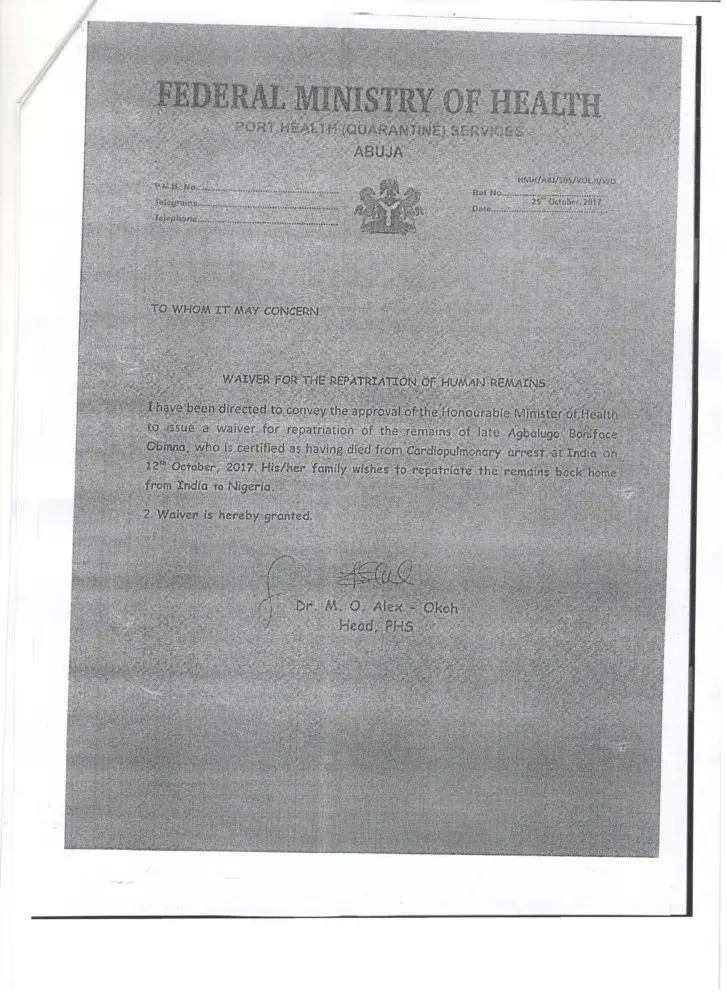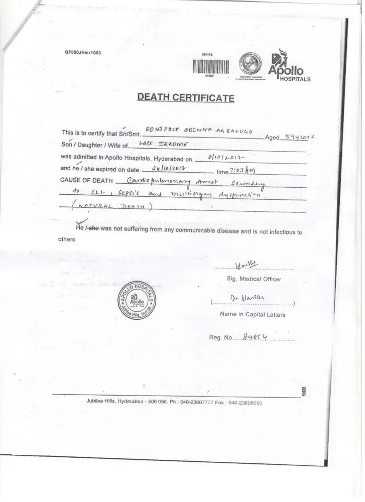 The date for the flight elapsed and we had to wait to ascertain his conditions before rescheduling the flights. My father passed away in Apollo Hospital, Hyderabad, India on the 24th of October and my mother's ticket was rescheduled for the 28th of October through the same Wakanow and an extra charge of N301, 291 was paid on her ticket.
