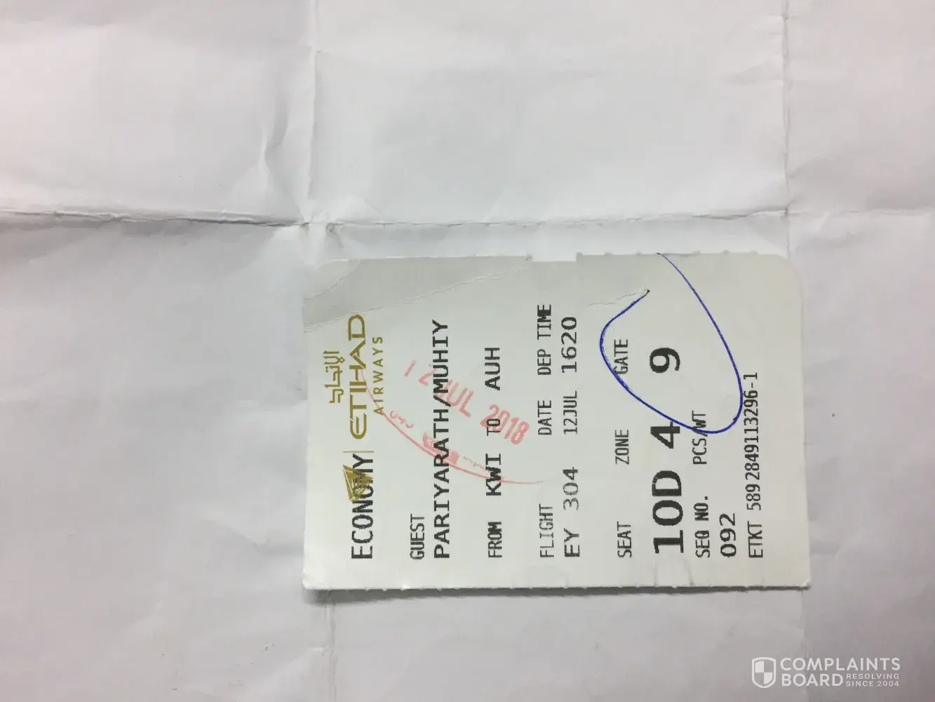 Myself, Ranjit Kumar Das, Etihad Privileged Guest No.. [protected], booked a flight ticket on Etihad Airways online on 09/07/2018 night.