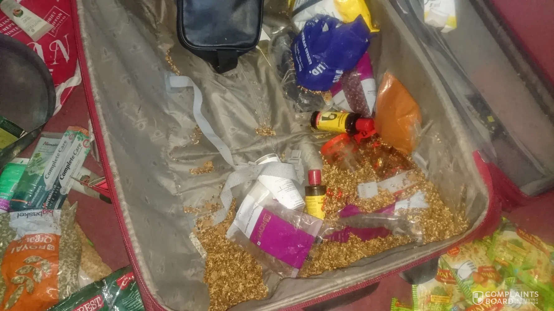 Secondly, on 12/04 when I received the bag it was completely damaged. Handle wheel material everything broken in the suitcase. All luggage inside was in pieces, liquid bottles broken, all my clothes are soaked in oil and all food packets were broken and mixed with each other. The bag was completely ripped. All gifts everything I bought was in pieces.