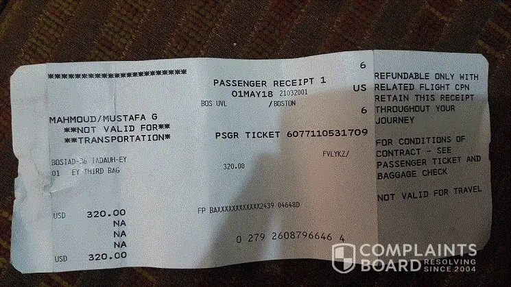 * 4 hours before scheduled departure time I went to check in my luggage and I was shocked again when I was informed that I had to pay $450 for excess luggage.I tried to explain that fact that I already paid for excess luggage (I presented my payment receipt) and that this was not my fault and I did not have to pay for the mistake of your staff in Boston. Unfortunately your Abu Dhabi staff rudely told to me to pay if I wanted to proceed with my flight, and that was a clear threat and taking advantage of a passenger who was in a foreign country with no affiliation to that place.
