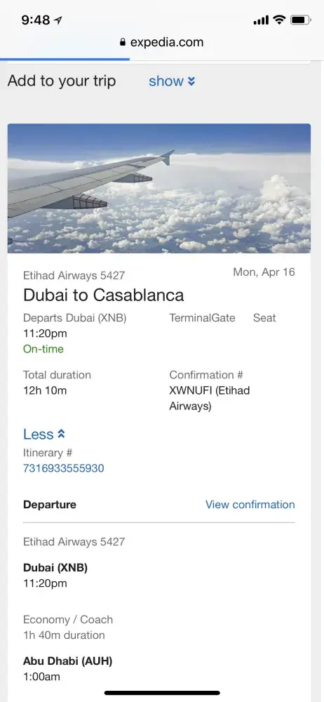 Good Day. It's in accordance with my last flight in Etihad with flight details: