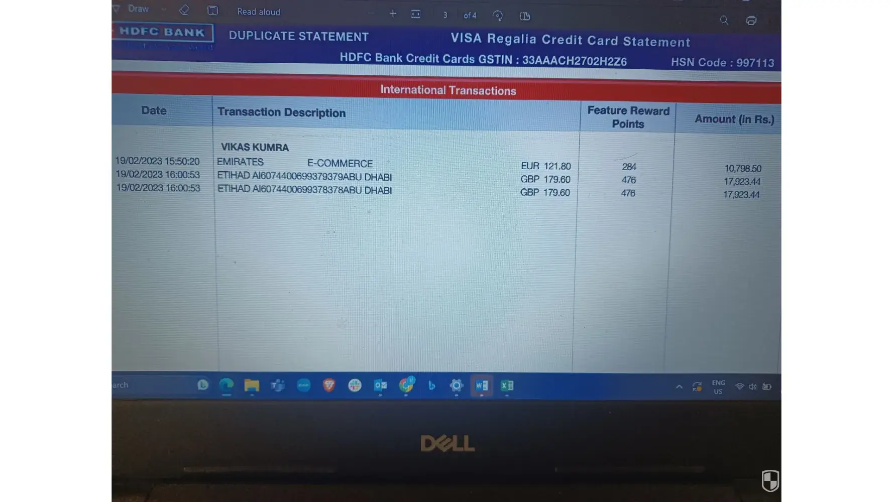 adding below the screen shot of card statement