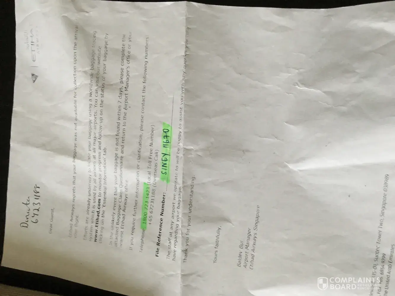 I am shocked that this has happened and I want to know what ethiad are going to do about it. Gold tier member ( [protected] ).