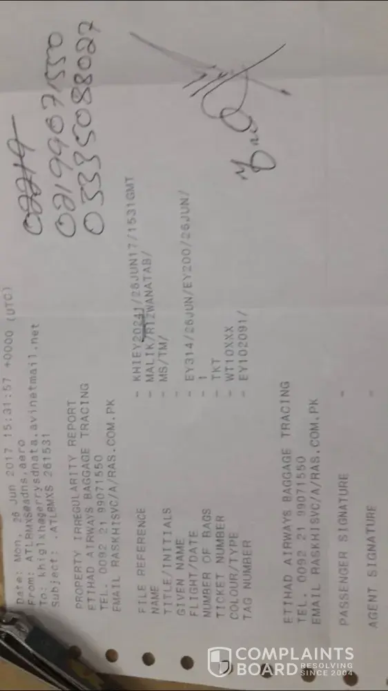 I have made several calls to Karachi airport asking about it but the said they didn't trace our luggage carton. Attached below is the complaint receipt for the lost luggage.