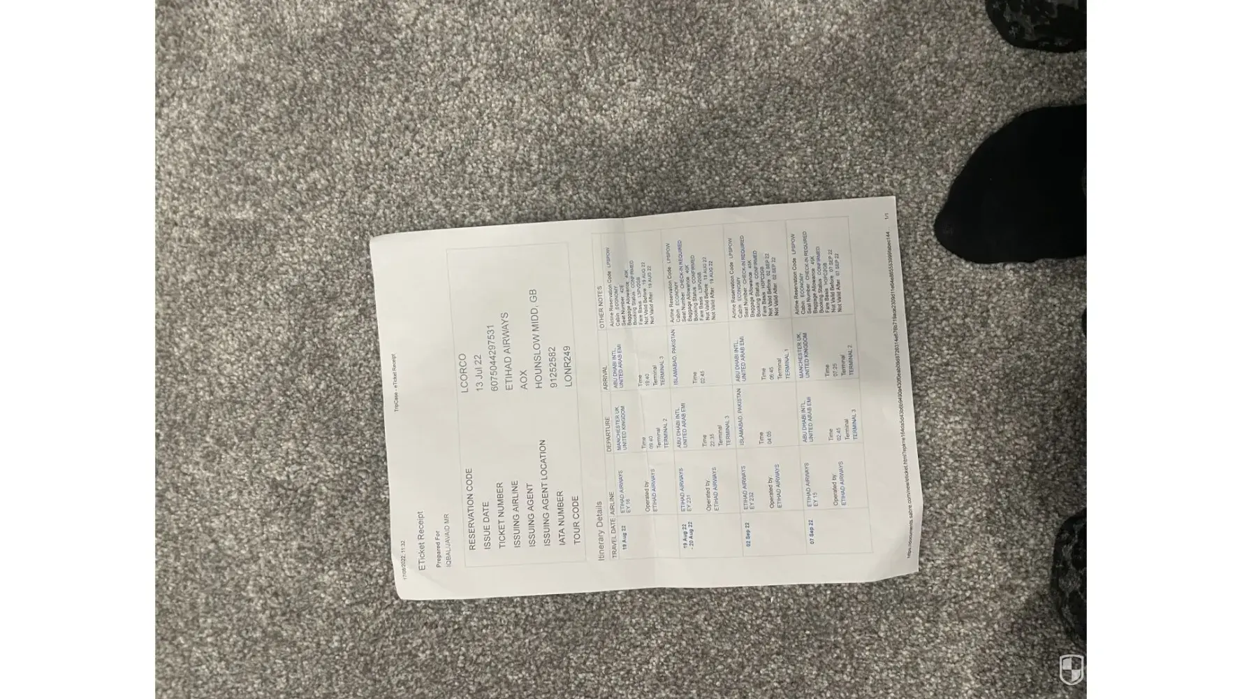 I was booked to fly from Abu Dhabi International airport to Manchester Airport on 7th September 2022 on flight EY0015.