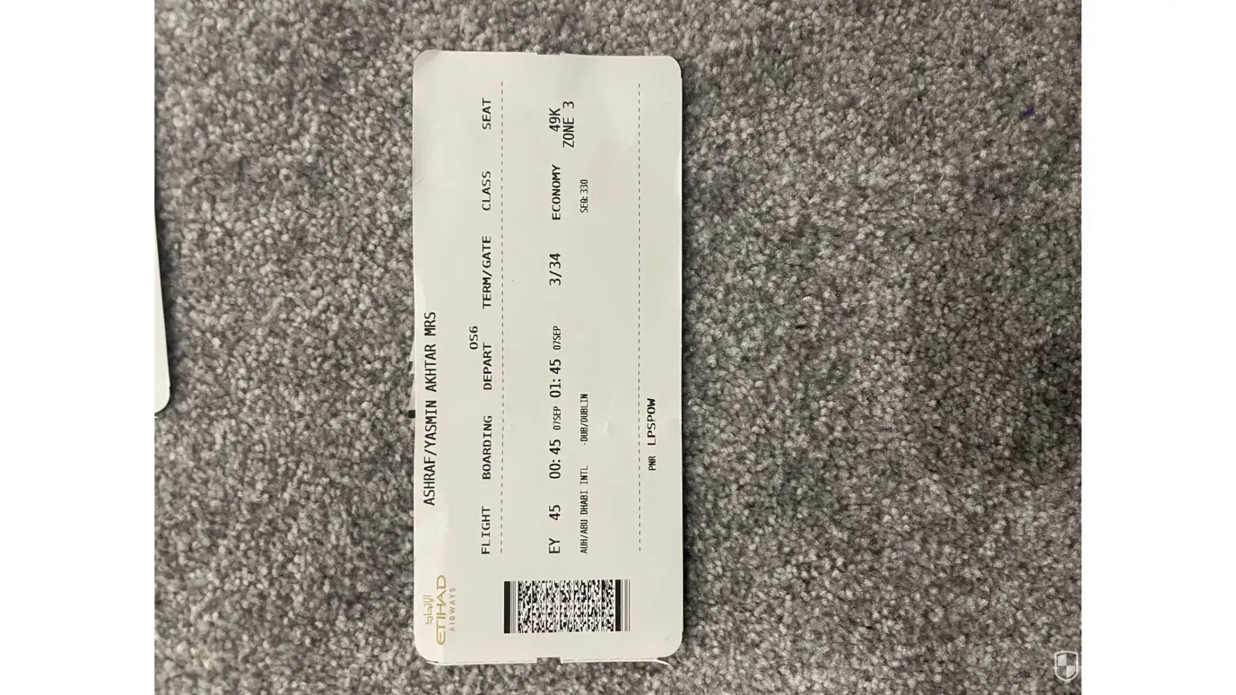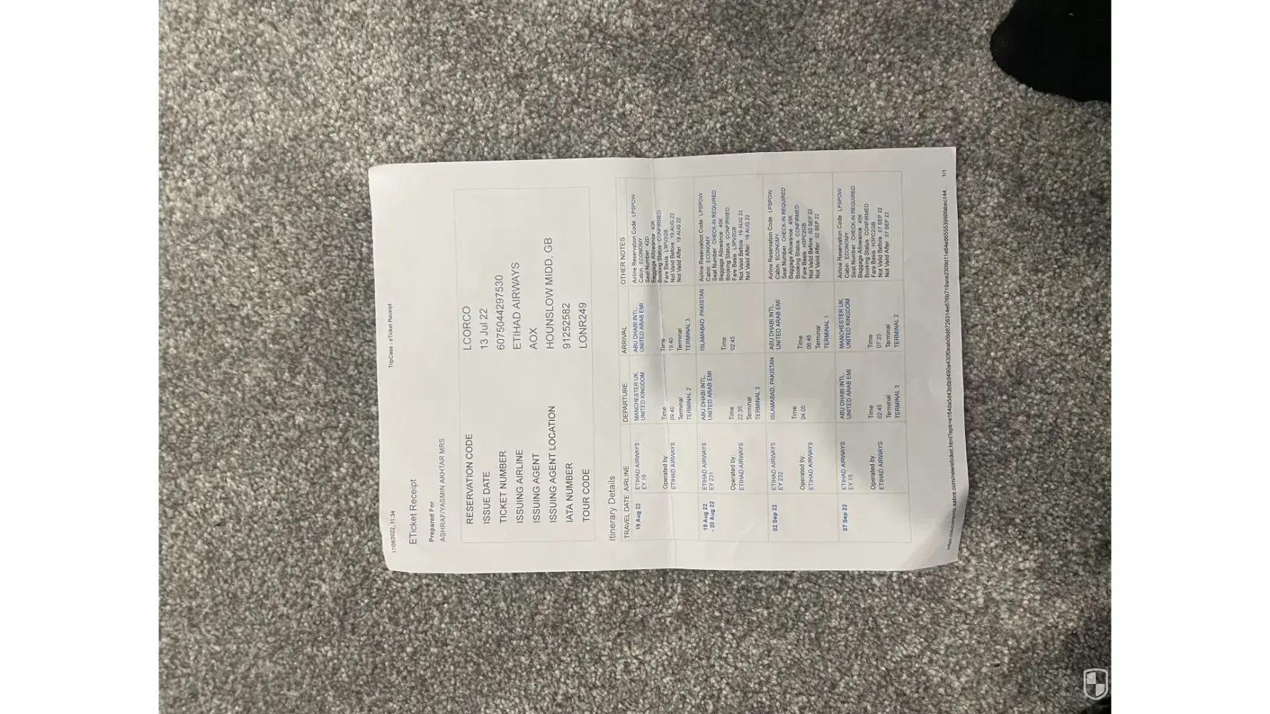 - one for my daughter who lives in UK (4 leg journey) - Etihad Airways reference is: QSOWFE
