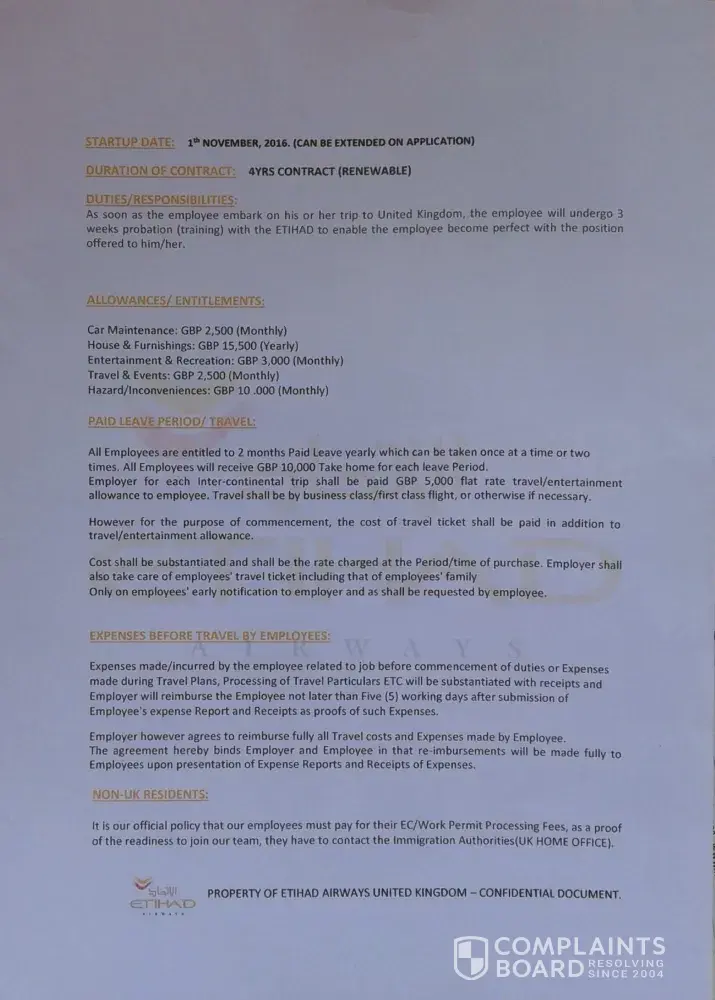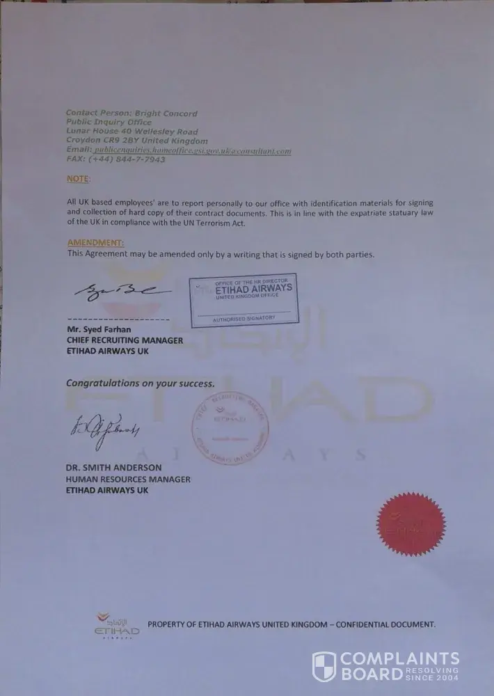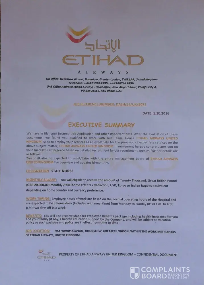 genuinity of the job offer received as a staff nurse at etihad airways uk