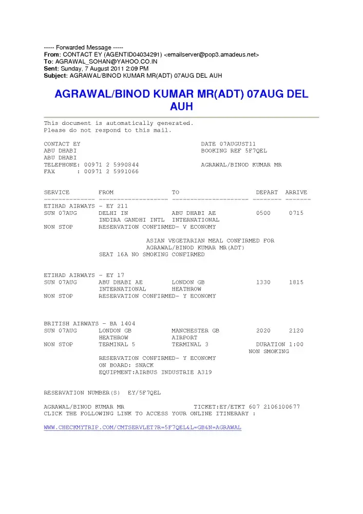 During the first week of March, we at the office made a booking for a return ticket at Etihad Airways for the Managing Director of the company.