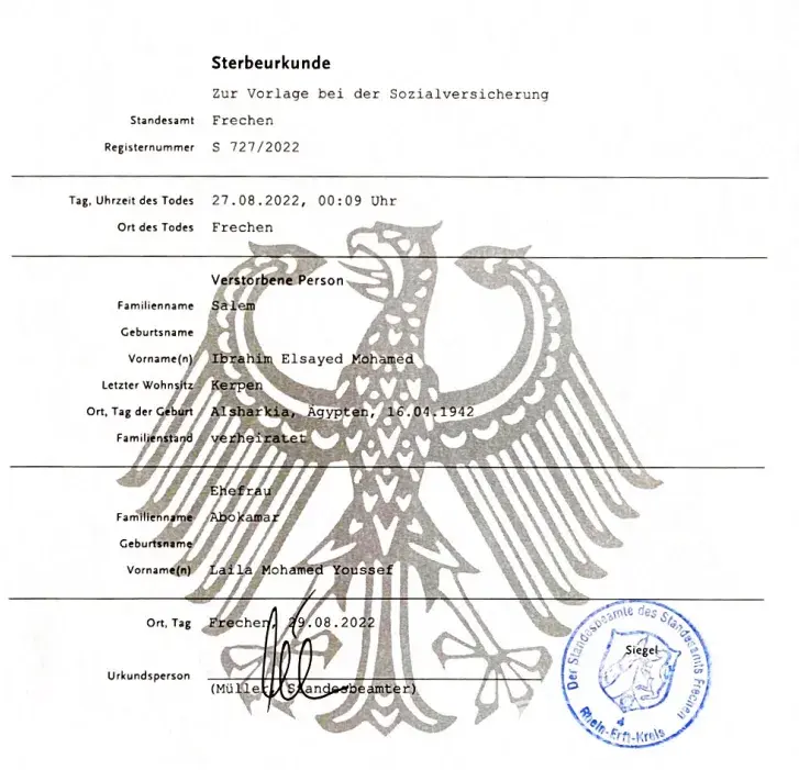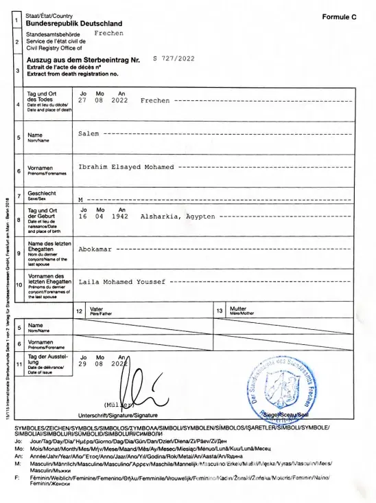 Attaching my father-in-law death certificate, the death was the main trigger for all changes happened in my wife's & kids' tickets