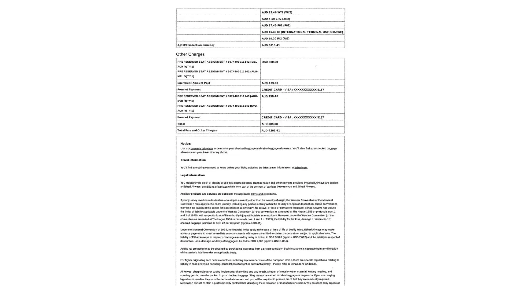 If Etihad's staff can't stay true to what is stated on the airline website then this is an unreliable airline. If you admit this was a human mistake then please let me know how I can submit all the extra expenses that resulted from this situation and ask for a refund.