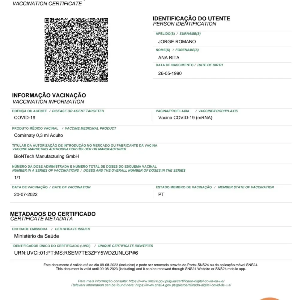 I finally presented all my documentation and they told me I couldn't board and closed the gate. The excuse was that I was unable to show a valid COVID-19 vaccination certificate. I've attached the COVID certificate that I presented at boarding which is a certificate issued by the Portuguese National Health System, with an English translation and clearly stating that I am fully vaccinated against COVID-19 (1/1 = fully vaccinated).