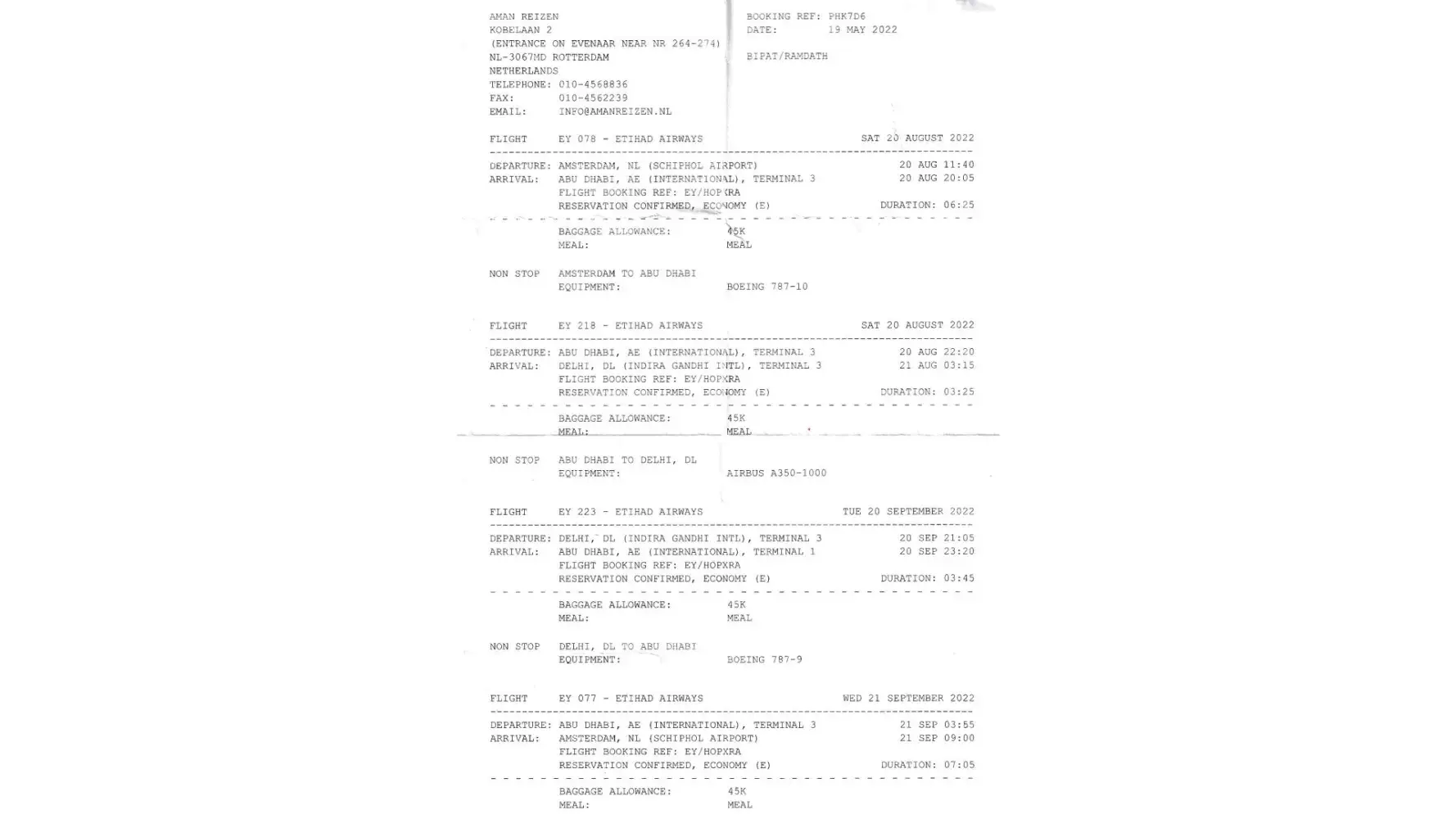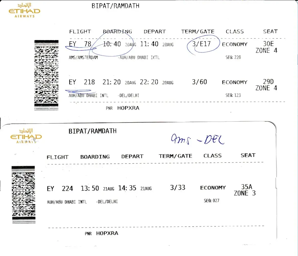 I flew with Etihad from Dublin to New Delhi on 15th Oct 2022 under PNR - LLFCDI.