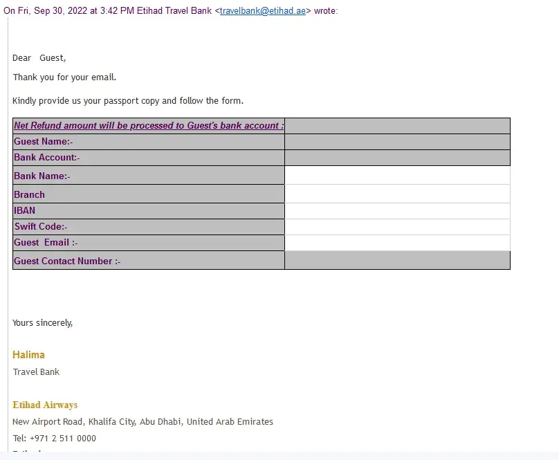 I had a ticket with Etihad since two years ago, they didn't want to refund it (Due to the Covid cancellation), they saved my money in Etihad guest account as a credit. I received an email 3 month ago, forcing me to use the credit or it will be expired. They wanted to force me to travel or lose the credit. However, they shouldn't do that under any circumstances, I nicely explained that I can't travel due to my husband sickness (Diagnosed with liver cancer). They requested a proof, I have sent them confidential documents from the hospital, which was unethical at all to show this stuff. They approved the refund and requested the bank details, which I did send 3 month ago now. They haven't refunded the money, and not responding to any of my emails. I can't believe how unethical was that. I will raise it to the highest level and got all of the proof. I will raise it to the social media, ACCC and everywhere as while I am suffering with my husband disease and running between hospitals daily to extend his life, they got me to suffer more emotionally and mentally.