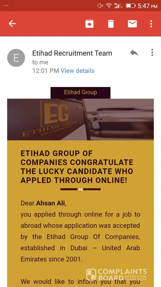 I recevied job offer Is this recruitment genuine can we apply in ETIHAD GROUP OF COMPANIES.