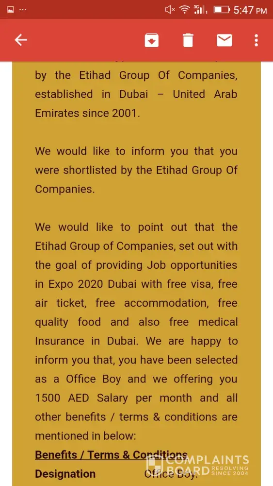 ITS SCAM WEBSITE etihadgroupofcompanies.com for job