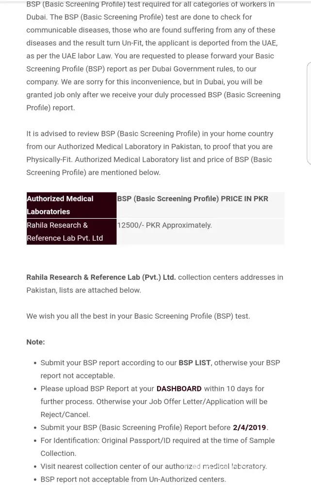 This company offering a fake job offer to job seekers, after acceptance of job offer ask the candidate to conduct medical test (BSP) costing Rs.13000. In his fraudulent Rahila Research and Reference lab Pakistan is sharing partner. Company recommended to conduct the medical only from above lab. The test results given by lab also not sure that they examined the sample or give you pre arranged copy/paste results, because lab staff refuse to mention any candidate identification like passport or ID details on test reports. Lab also not asked about any identification document of candidate at the time of samples.