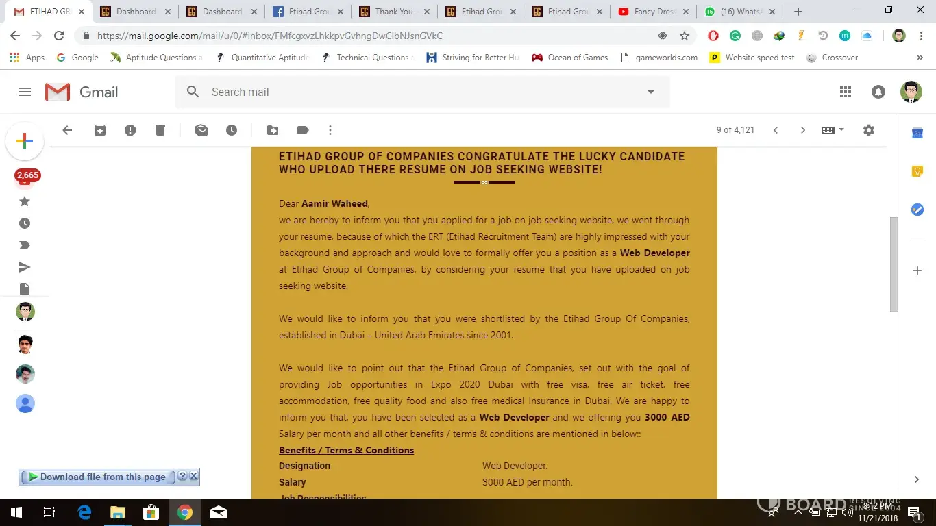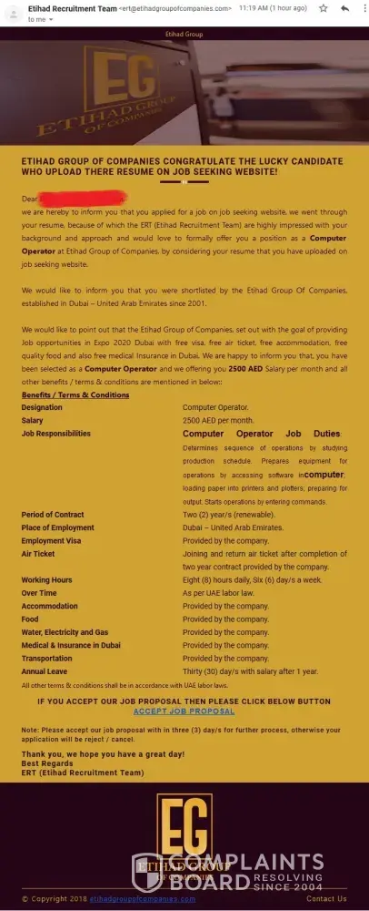 Got email for job proposal from etihad group of companies is it fake or True urgently