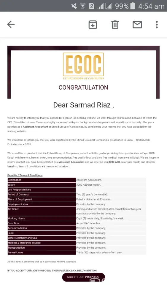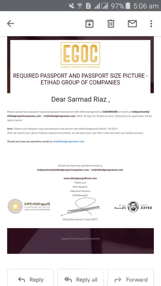 I got offer from your company email named: Etihad Recruitment Team