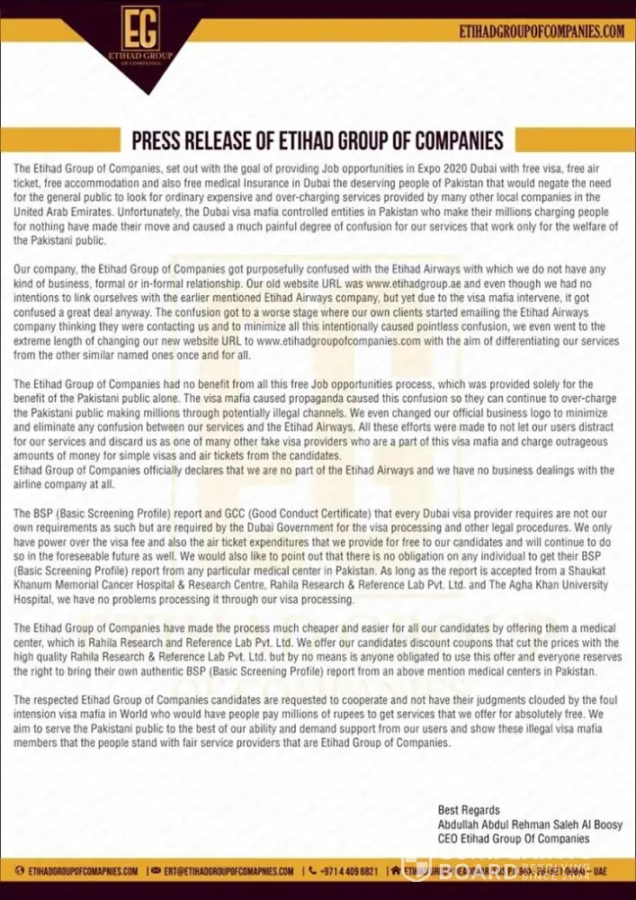 Thanks for all of you to guide this etihad group of companie fake...