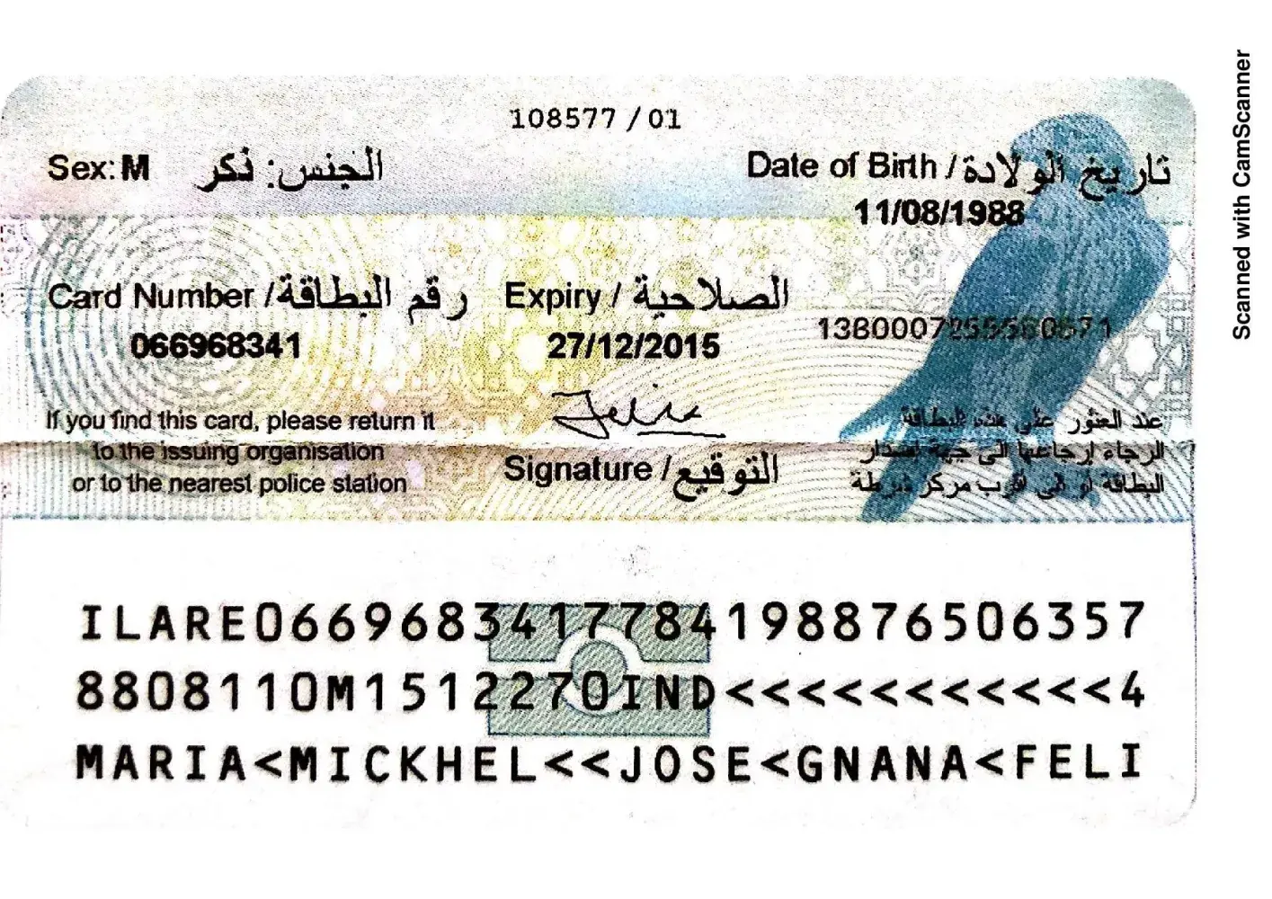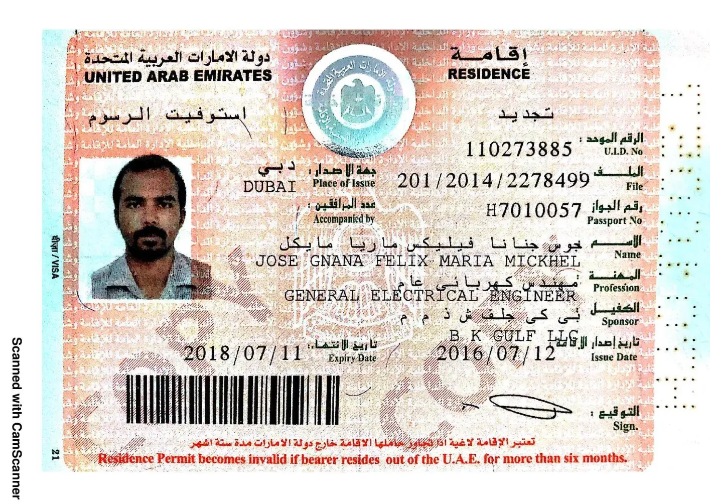 My UAE ID No. : [protected], Mahesh Ramachandra Rao