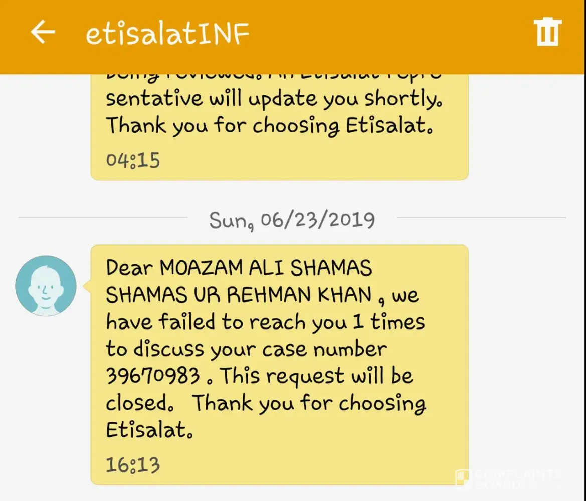 I sent all the chat proof to [protected]@etisalat.ae & [protected]@etisalalt.ae, but no use, they simply closed my compliant, without informing me, i came to know yesterday by calling 800101.