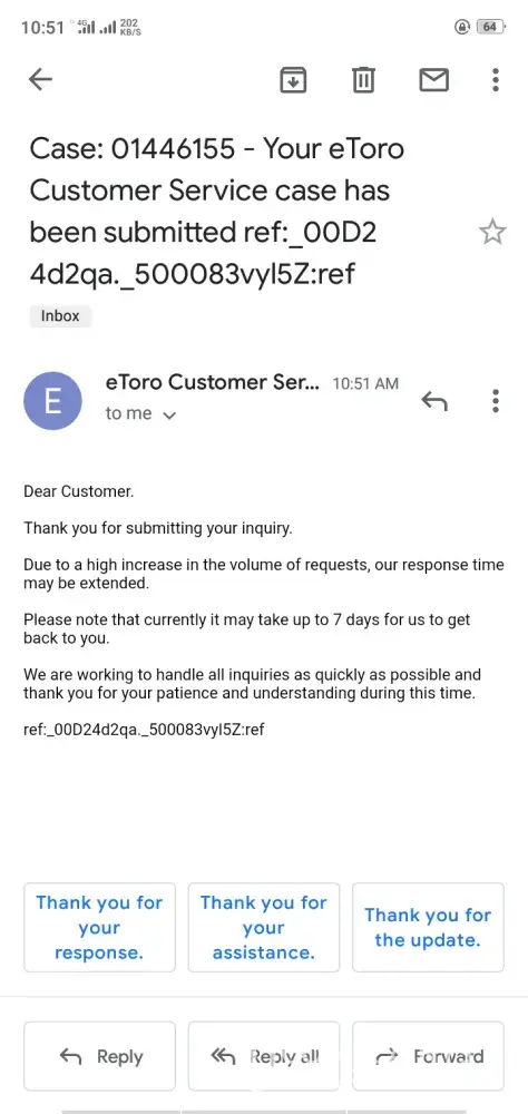 Kindly note that we are currently experiencing a high volume of chats.in order for us to assist you in the most efficient way possible, please open a ticket via our Customer Service Center: etoro.com/support or you can check out our help page https://www.etoro.com/en/help "I have already 3 tickets and 3 weeks passed, there is no customer service, in wich they say all the time:, Thank you for your inquiry.