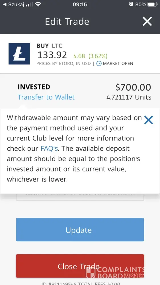 After this, I post on etoro asking about how to complain about this, and I blocked.