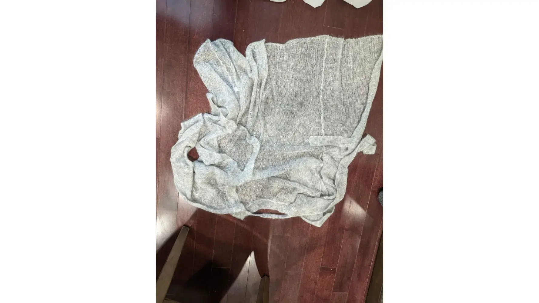 cardican has a hole in the top and there is no label indecating what material it is. The scrub top was sent with no pant. You can see it discribes a top and bottom.