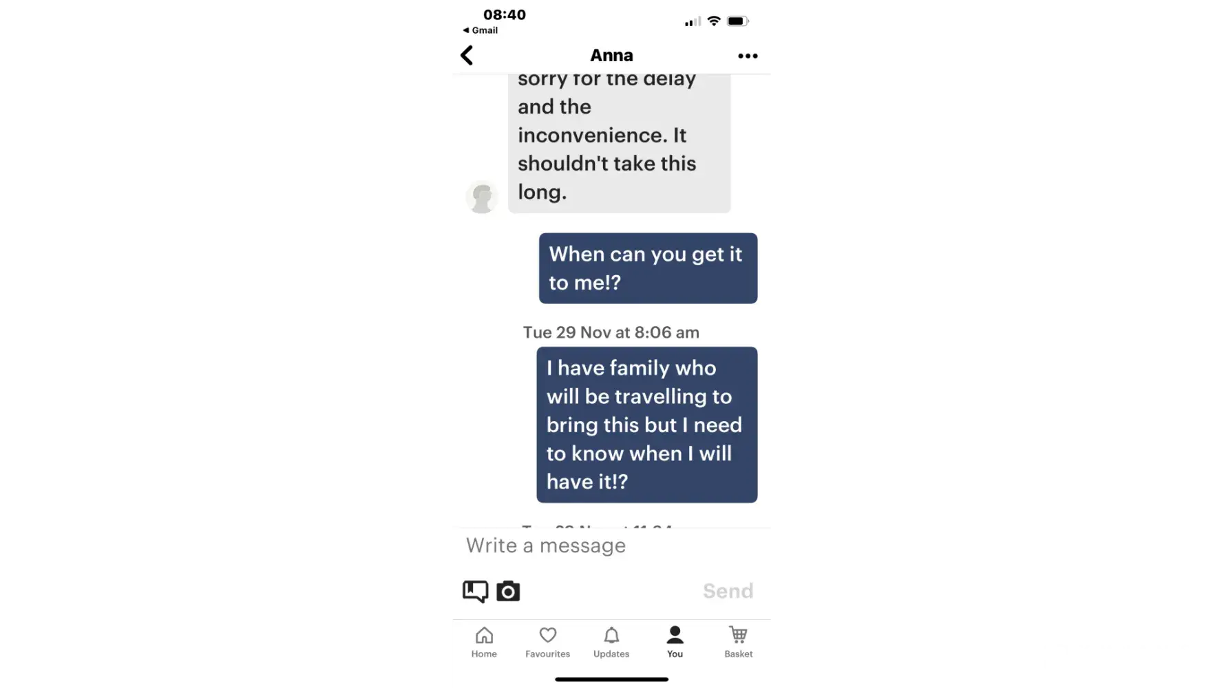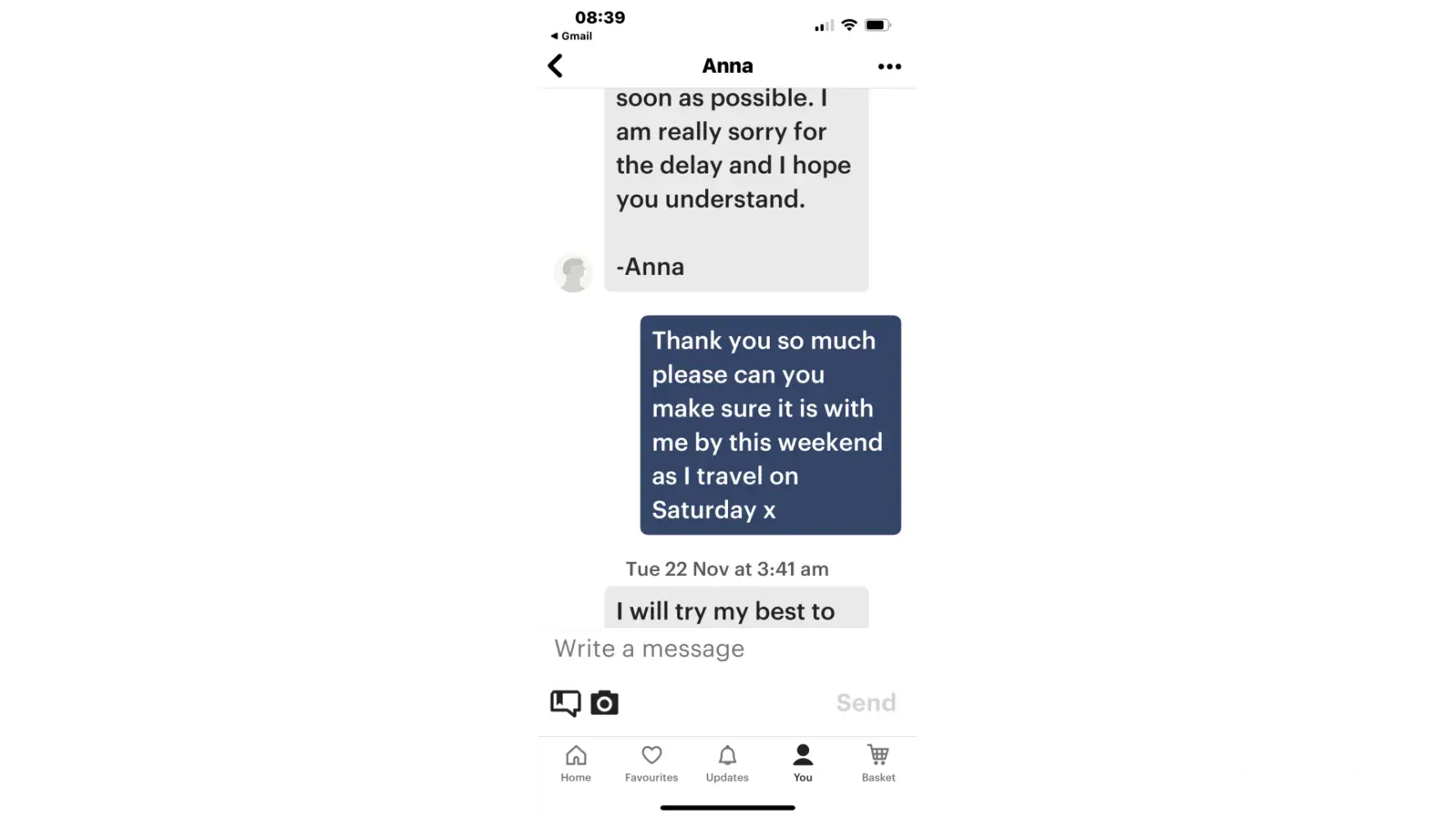 I placed an order for a music box #[protected] for $231.21 with Ismael on the 30th October 2022. as per attachment screen shots of my messages, Ismael assured me that he would have the box finished in a week. I also paid extra express shipping on the 02/11/22 as advised and set up by Ismael to ensure that the music box would get to me on time before a very special occassion. I expressed to Ismael that this is for a christening for my God Son, so it is obviously very important to me. He continued to send me messages saying that he would have it completed ASAP (all messages are in my account under Jodie smith ([protected]@yahoo.com. sg, mb: [protected])