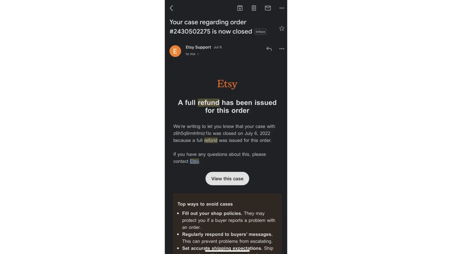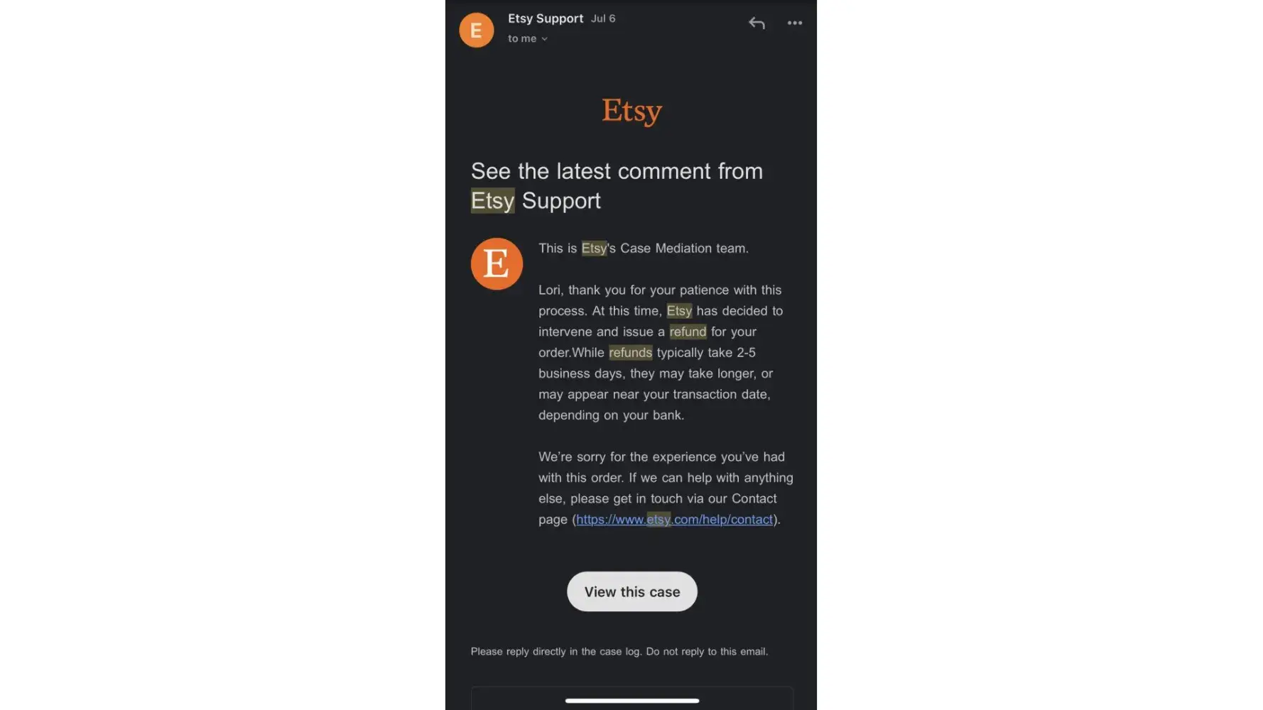 I found all the emails at this point I believe it’s fair to say that the refund was issued period. I would appreciate if you kindly removed this complaint as I have never had any issue with my shop and although this has done any damage it just doesn’t look good for on the shop but now I believe you either. Especially with your address being on it Thank you have a great day :)