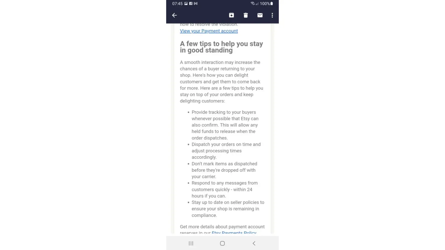 I recently started a small business selling my handmade jewellery on Etsy in October 2021, it's my first business and I'm still learning so I haven't has loads of sales yet. I made my 13th sale yesterday 26/03/2022 and today I received an email from Etsy telling me a payment account reserve of 75% has been placed on my account for 45 days with no cause and no explanation. All the reviews I have to date are 5 star, I always dispatch my orders earlier than stated in my processing times, I have never taken longer than 6 hours to reply to a customers message and I have never had any disputes, chargebacks or refunds. My products are all genuine handmade original designs and I have never had a listing removed or any intellectual property issues.