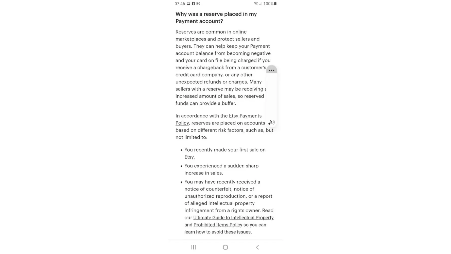 Why then has Etsy placed a reserve on my account when I have not violated any policies or had any payment or service issues?